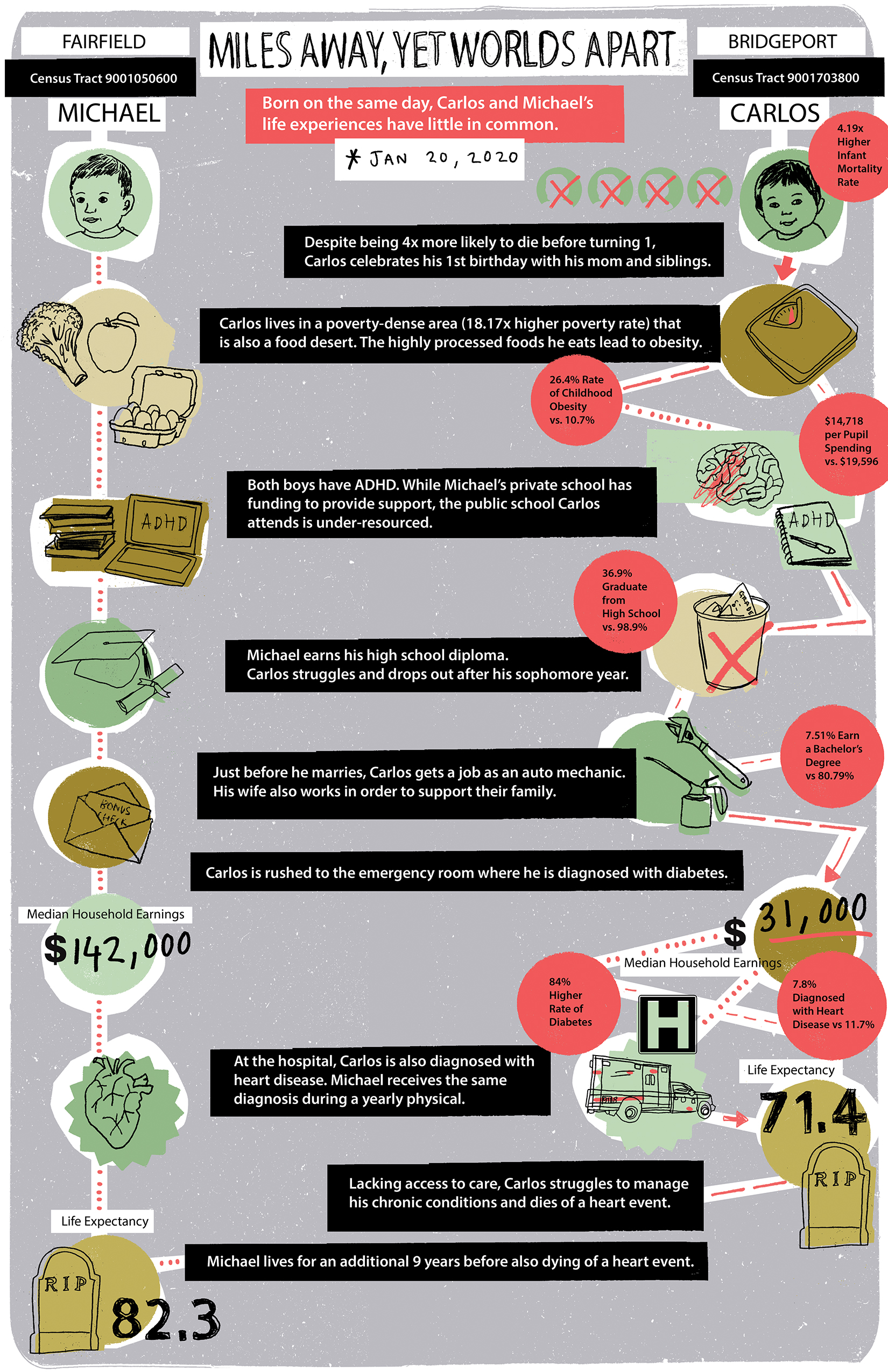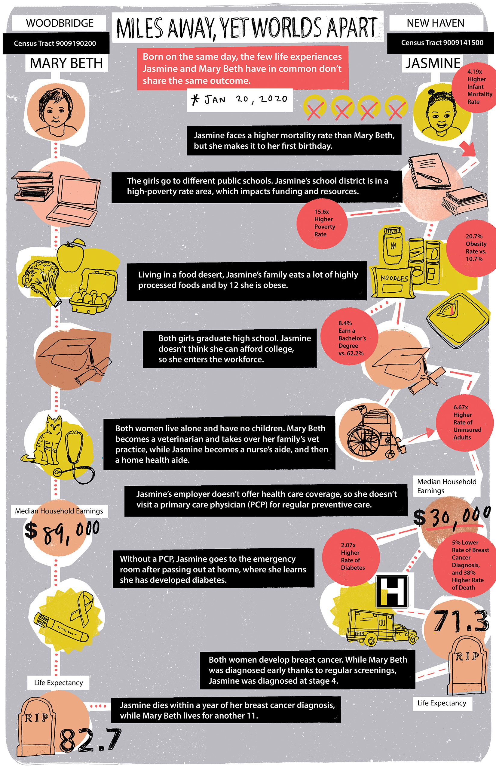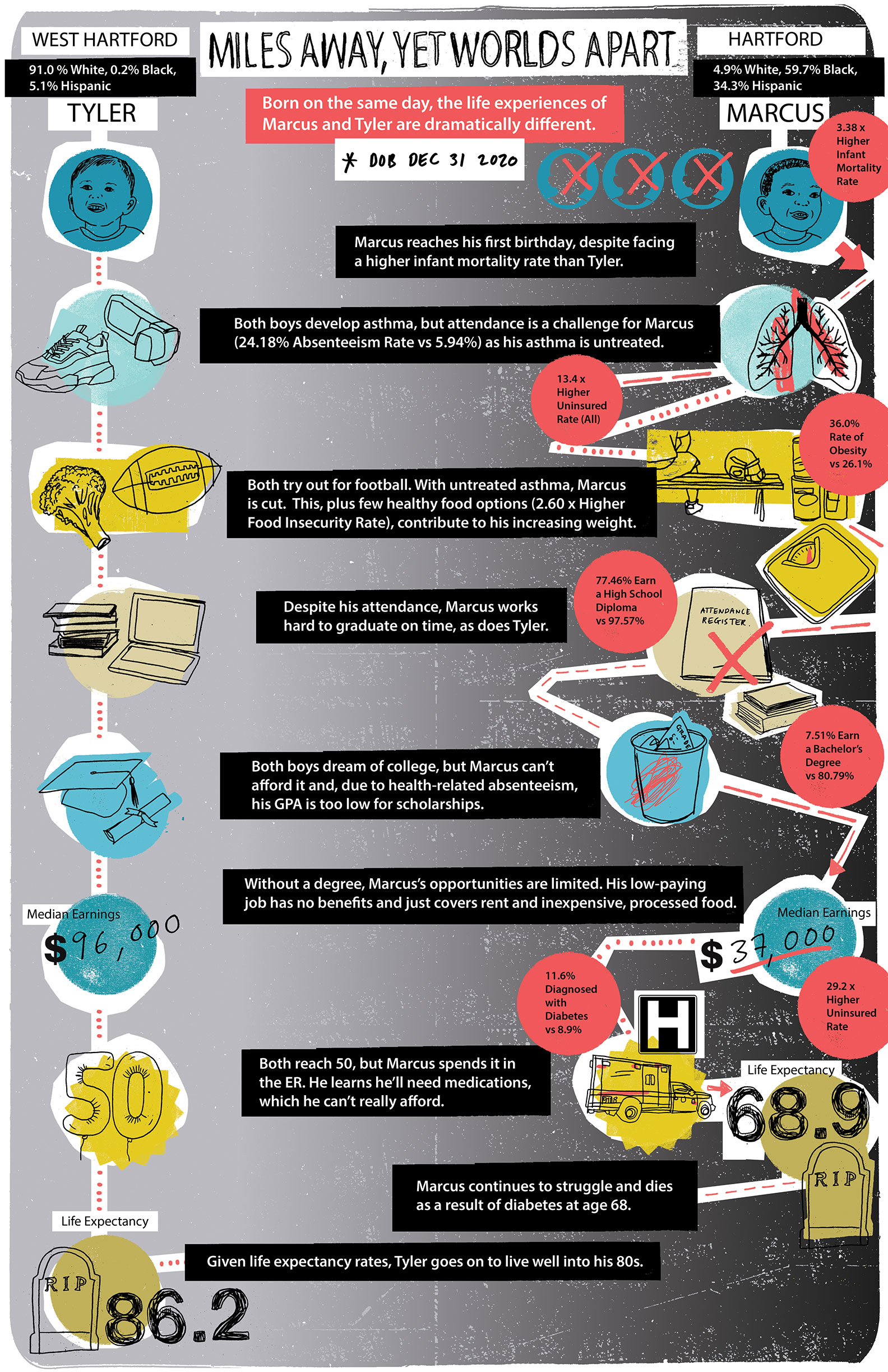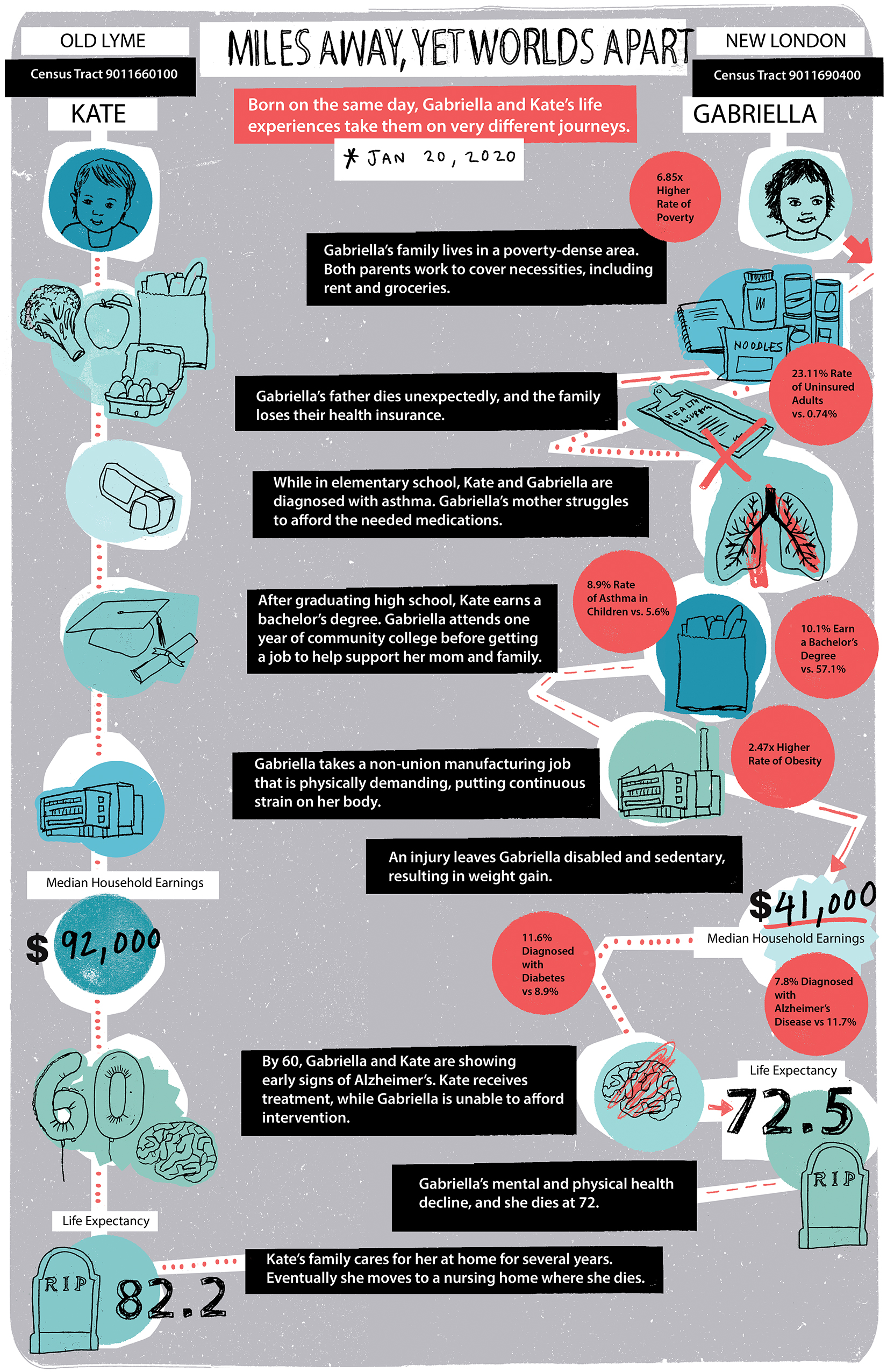 As you can see from the illustrations below, a few miles can make a big difference. In Connecticut, there is a gap in the health outcomes and quality of health care available to people in lower-income areas, especially if they identify as a person of color. As a Broker Academy Program graduate, you can help to change that.  You’ll become a trusted resource to help people understand their options and make decisions that can improve their health and wellbeing.